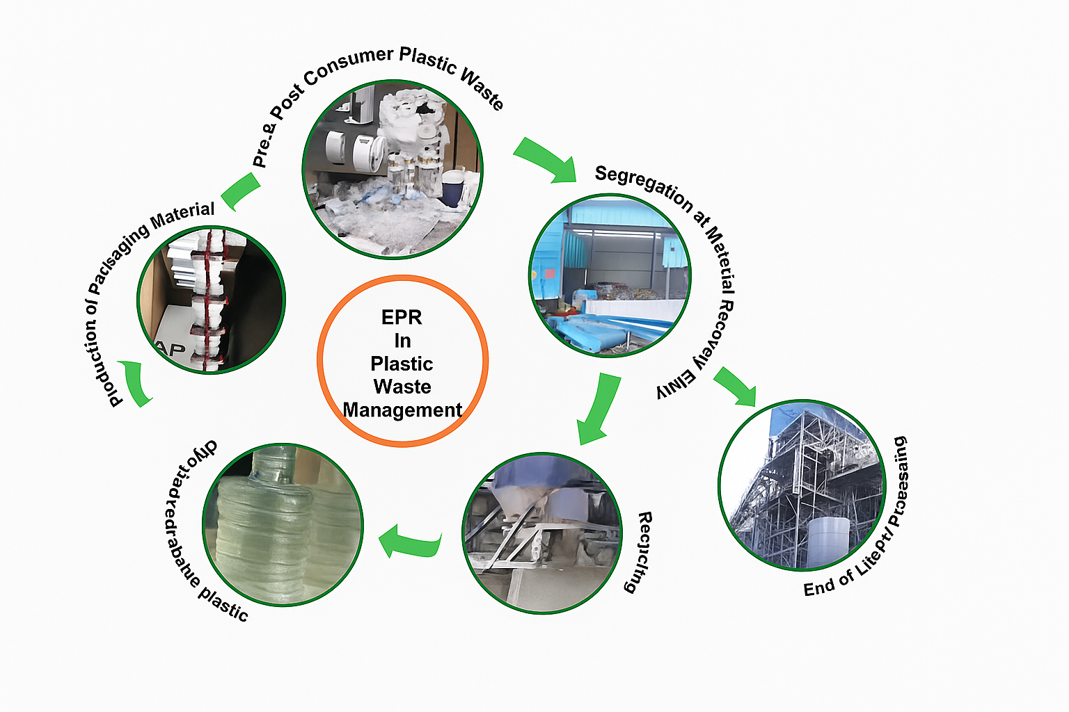Plastic, Electronic, Battery, Tyre, and Used Oil Waste.